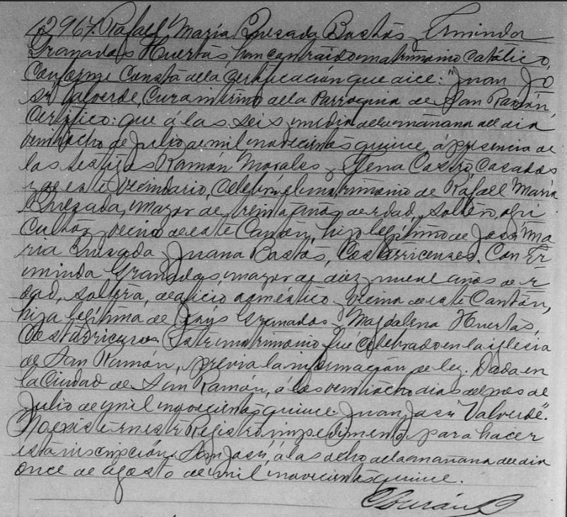 Casó con Herminda Granados Huertas en 1915 en San Ramón. Ver descendencia aquí.Para ver descencia, semblanza y fotos de Rafael y Herminda visitar http://www.concedemoncho.com/horario-buses-de-concepcion/descendencia-de-rafael-maria-de-jesus-quesada-bastos-1885-1979/
