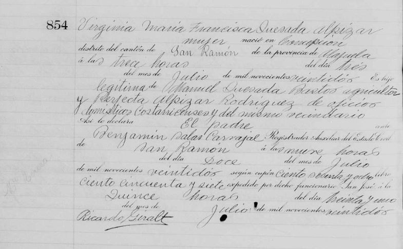 Al 2021, vive en San Juan, San Ramón al lado de su hermana Rita. Nunca se casó, tampoco tuvo descendencia. Colaboro mucho en la iglesia de Concepción como catequista y además de ayudante de los padres. Vivió con su hermana Francisca hasta que ella falleció en Concepción. Luego se fue a vivir a San Juan.