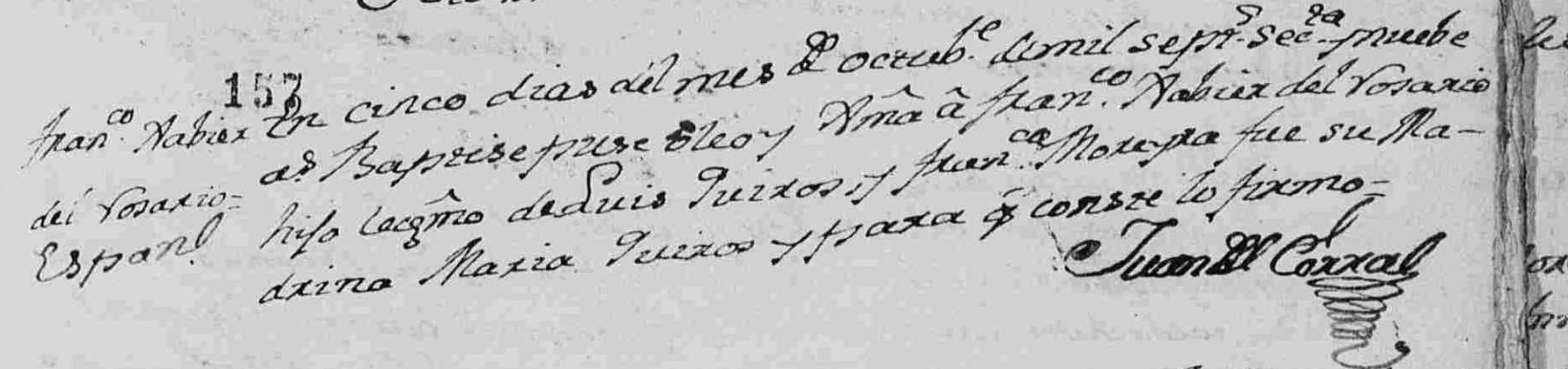 Su madrina fue María Quirós y se indica que era español.