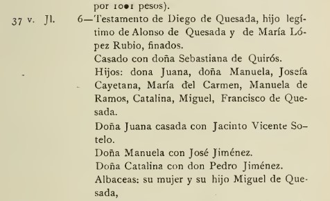 Testamento de Diego de Quesada y Sebastiana de Quirós