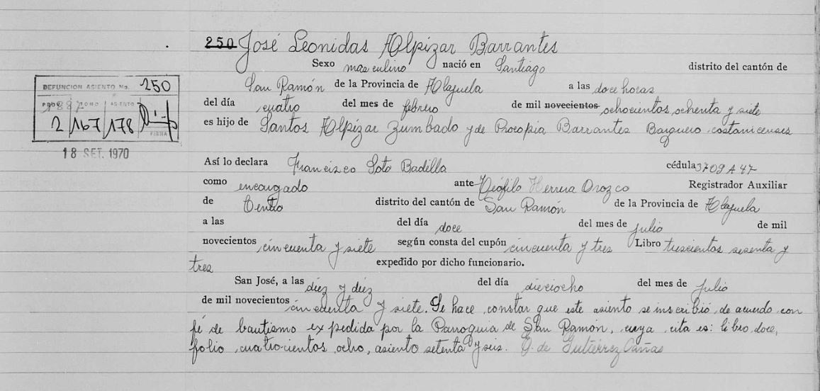 Hjo de Procopia y Santos Alpizar. Sirve para probar segundo apellido de Procopia